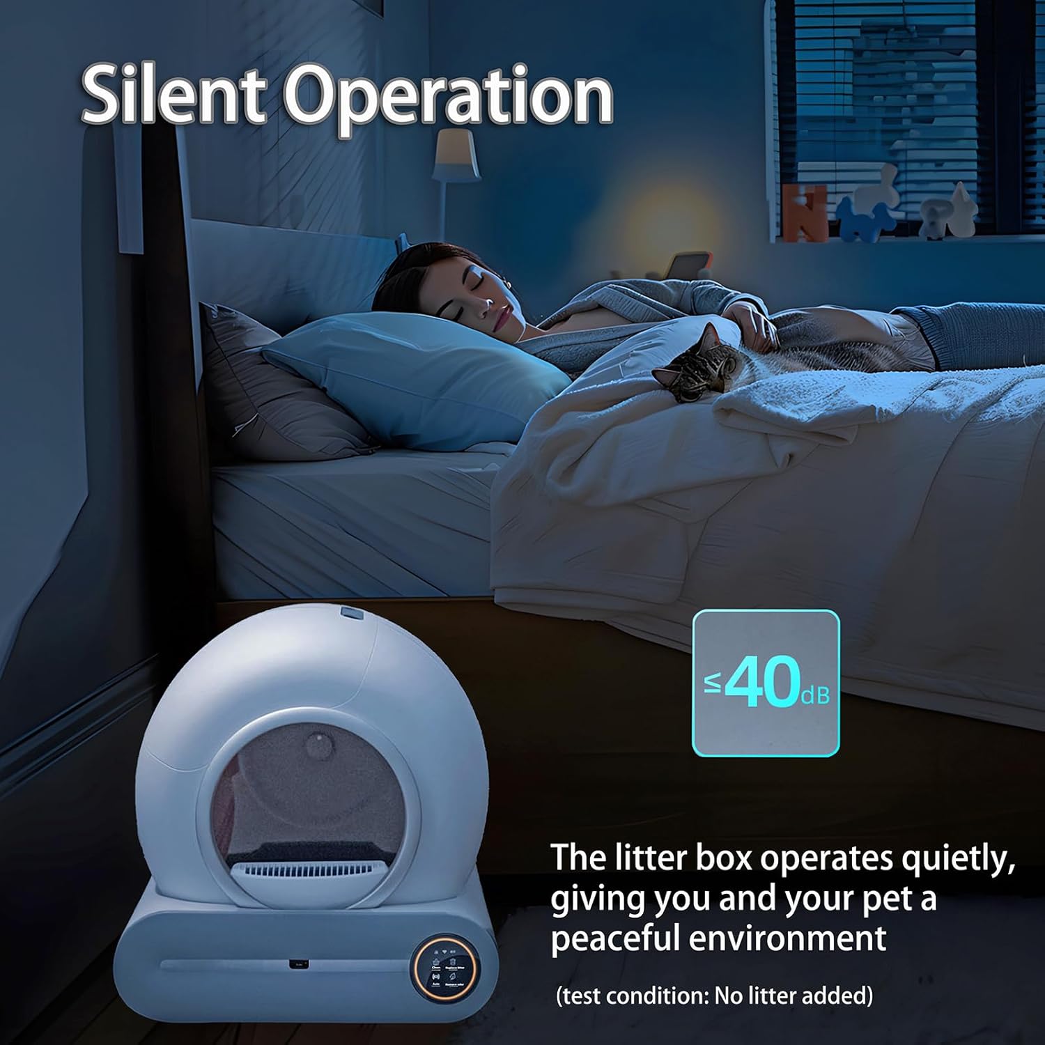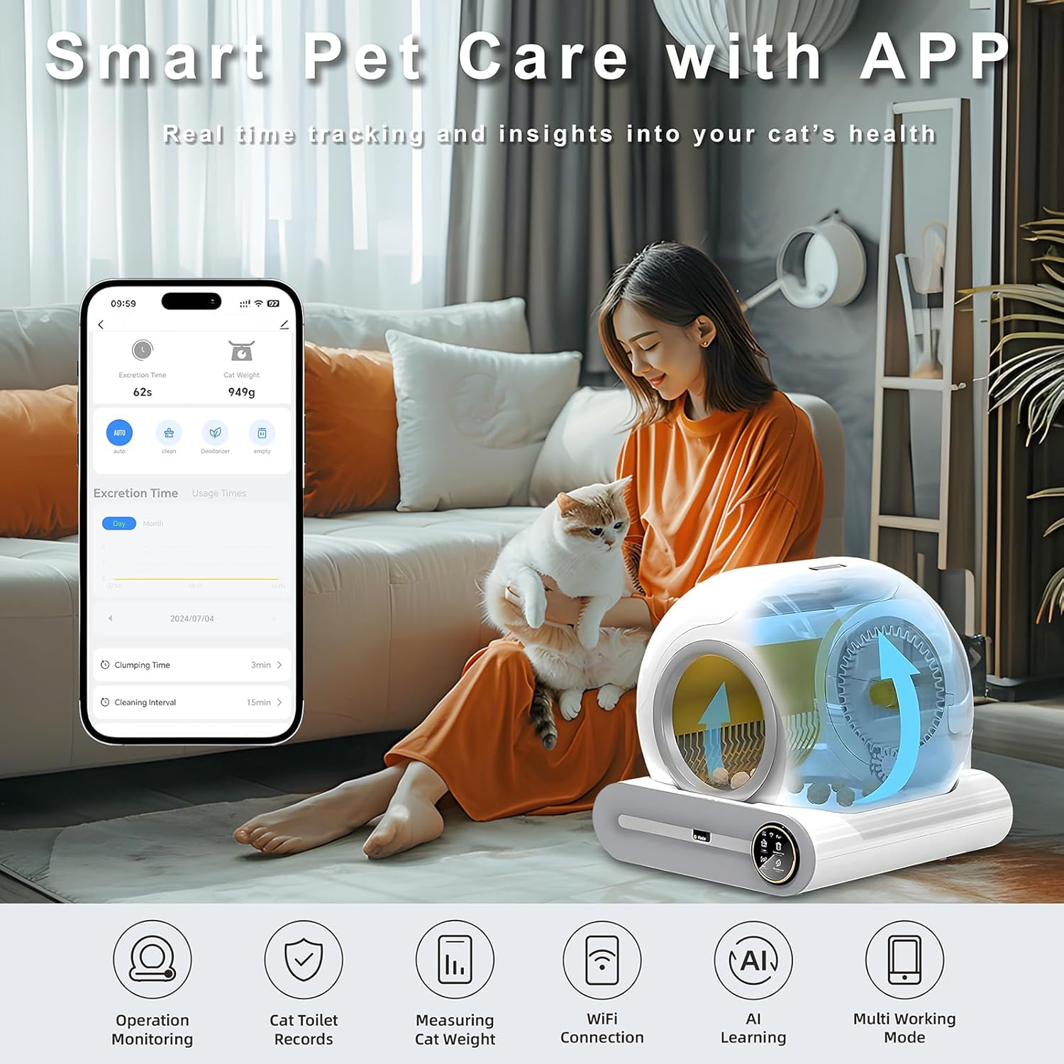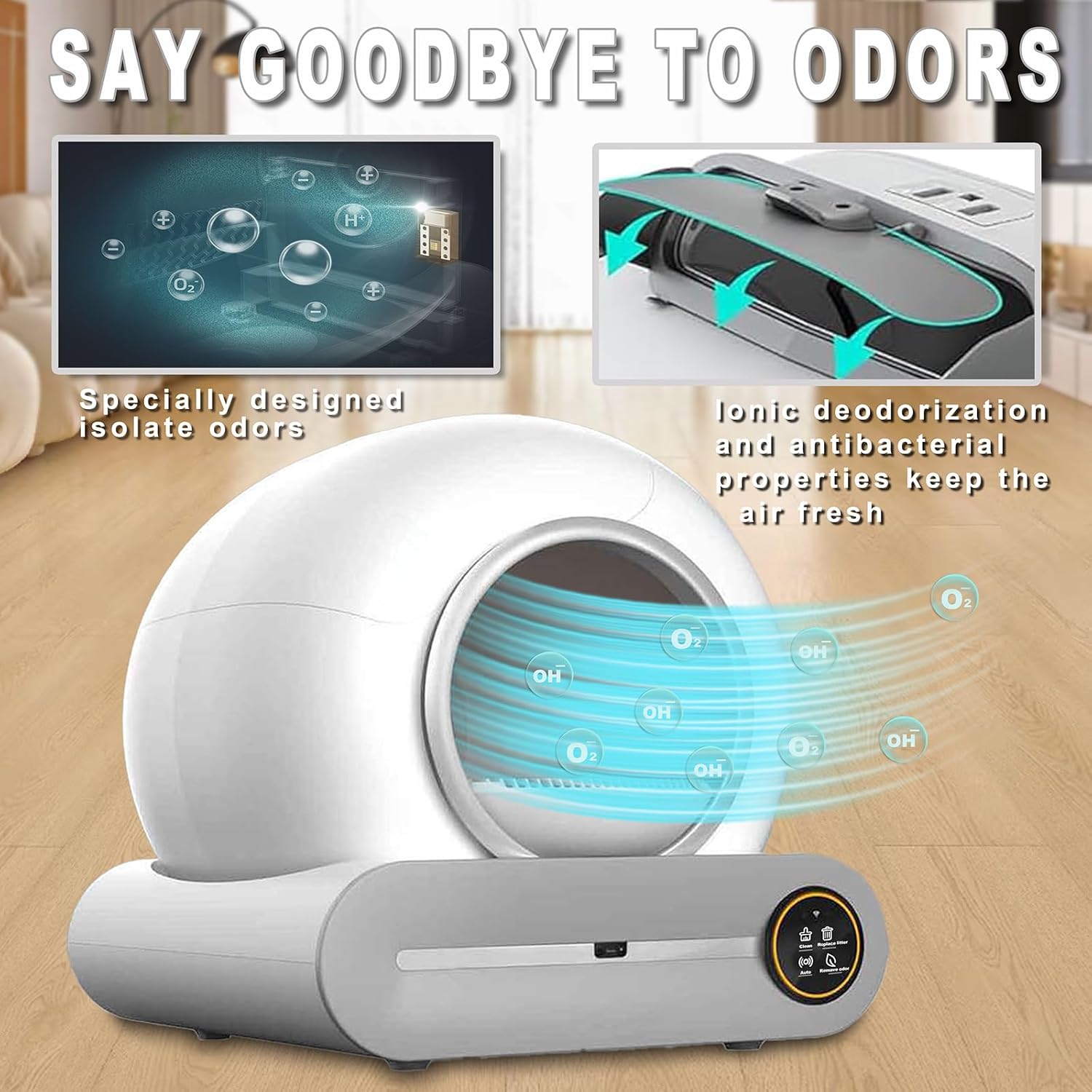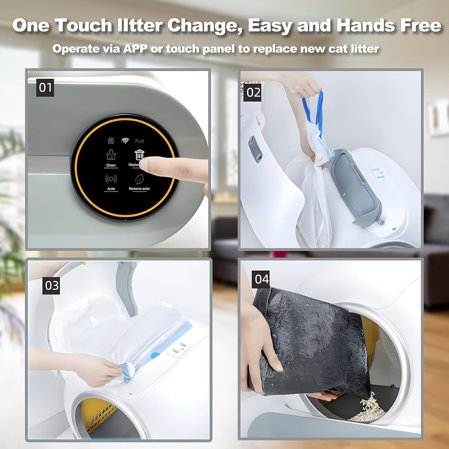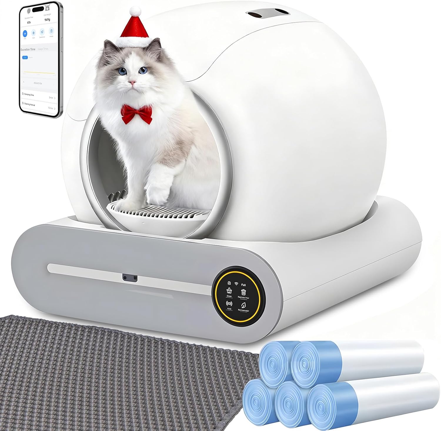 Self-Cleaning Cat Litter Tray, 65L + 9L Self-Cleaning Toilet with 5 Rolls of Rubbish Bags and 1 Floor Mat, Automatic Electric Cat Litter Tray, App Control for Multiple Cats