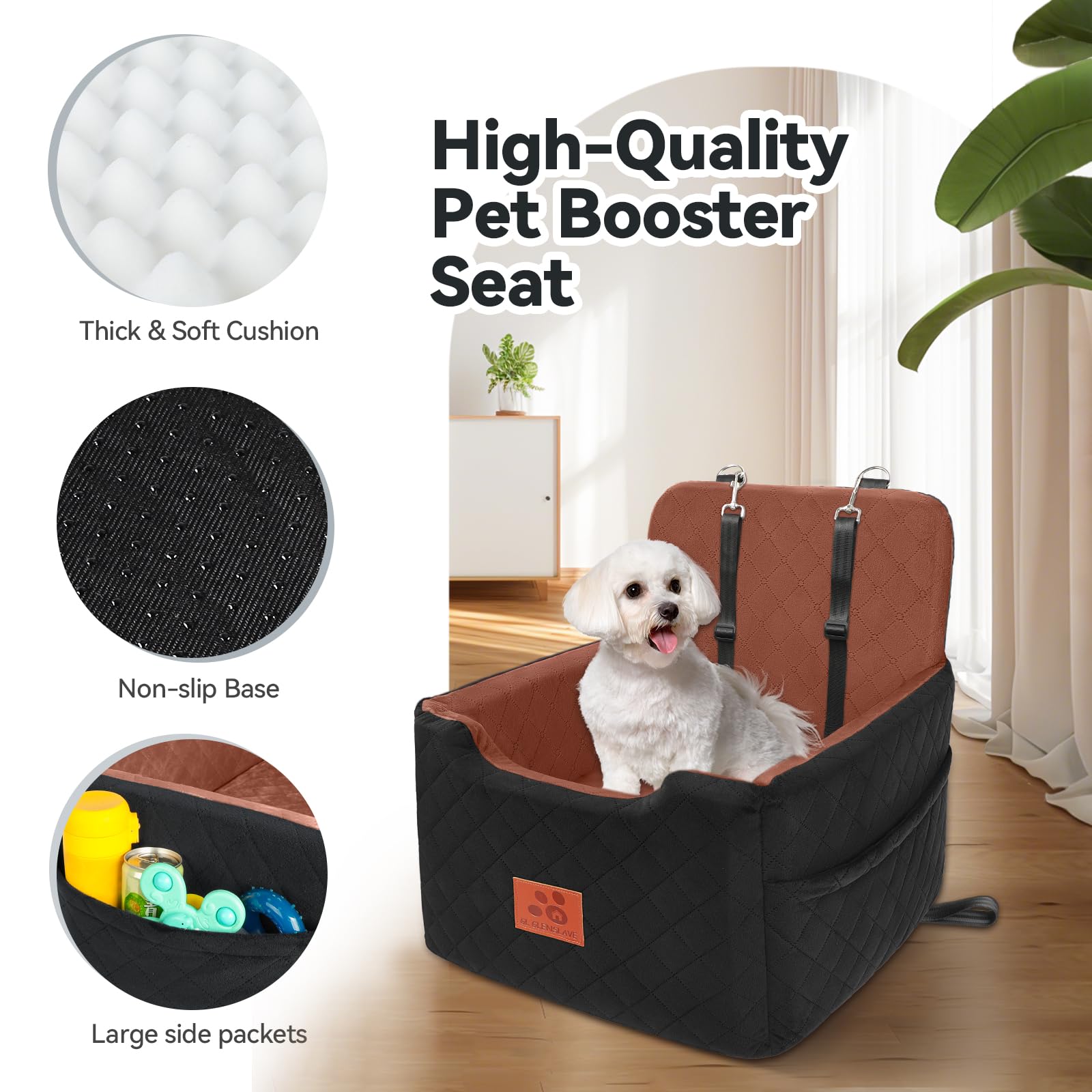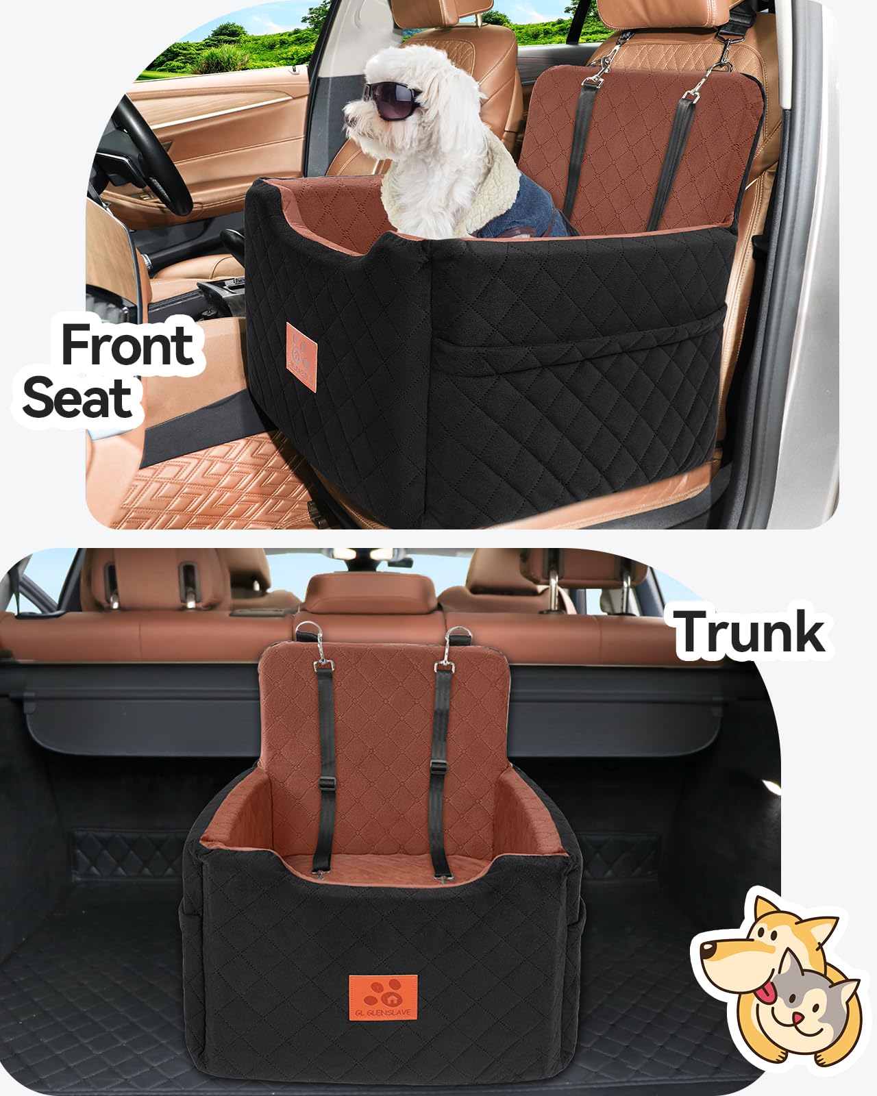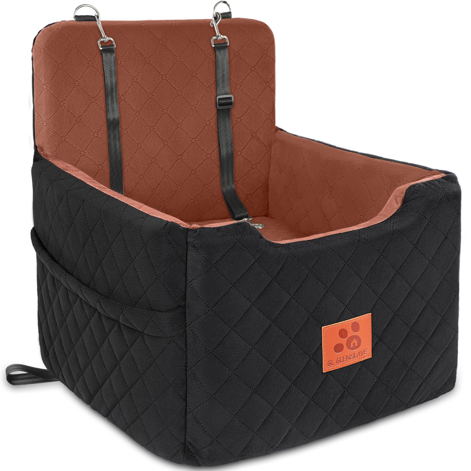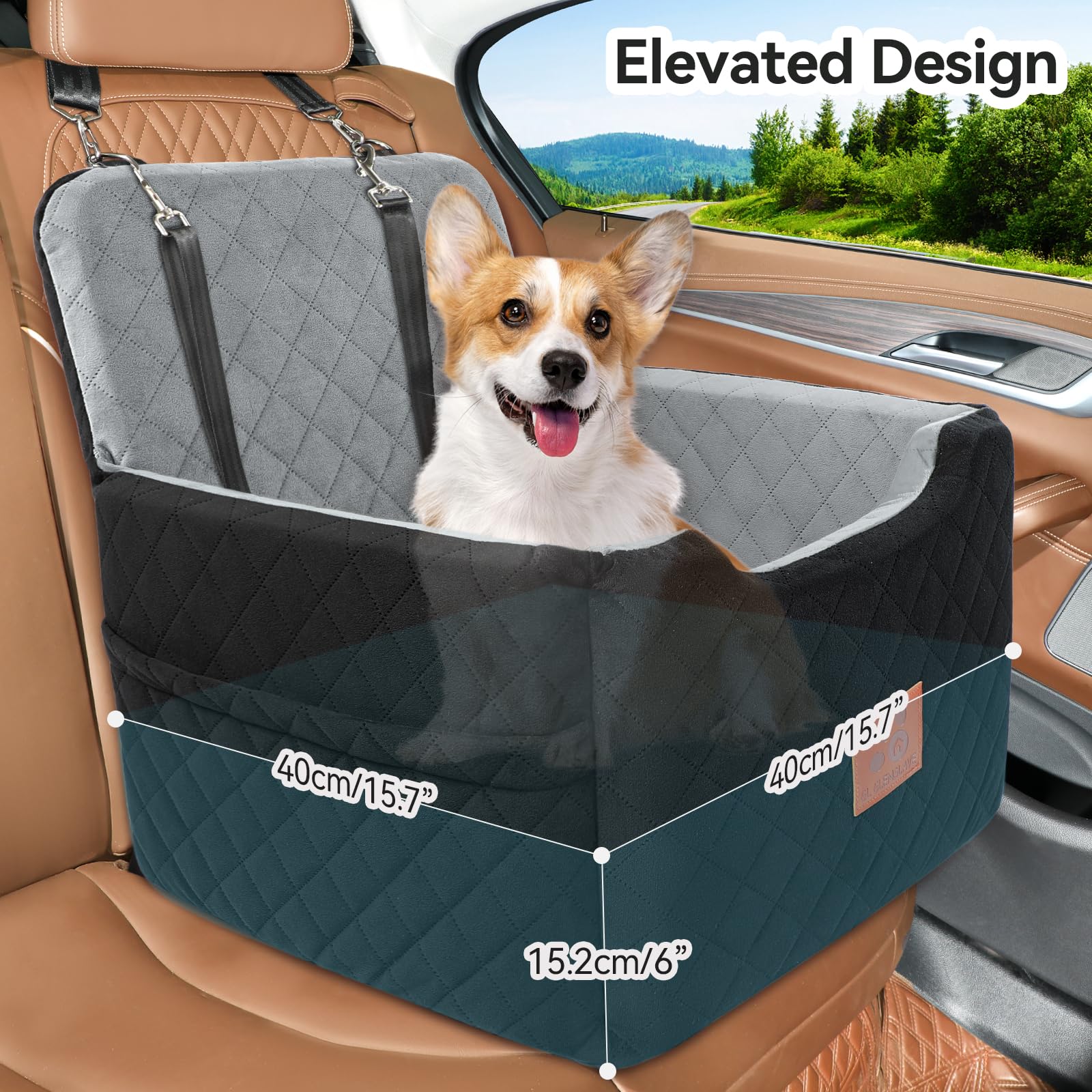 Dog Car Seat for Small/Medium Dogs Under 15 kg, Dog Car Seat, Removable and Washable Pet Car Seat, Dog Bed with 2 Seat Belts (Black/Grey)