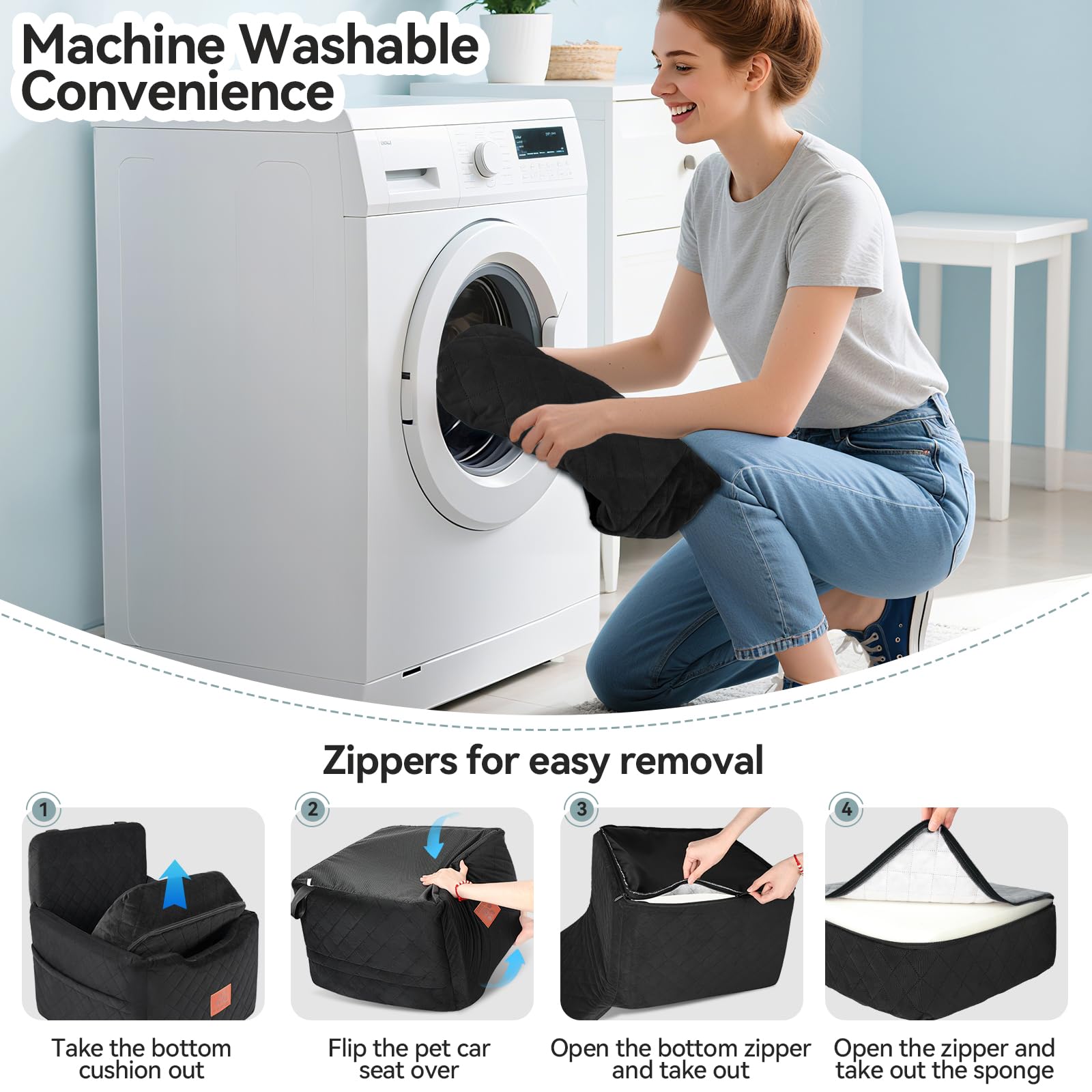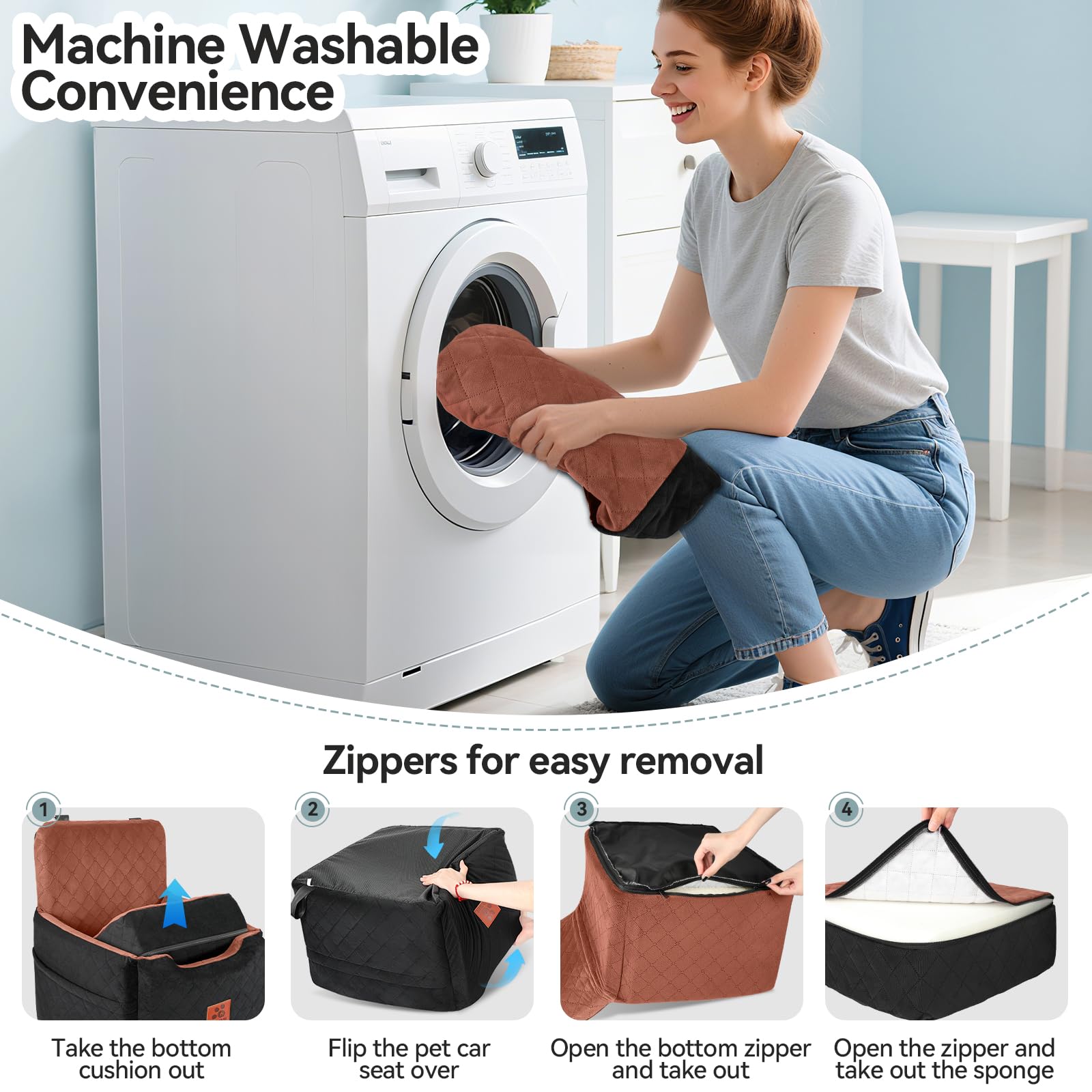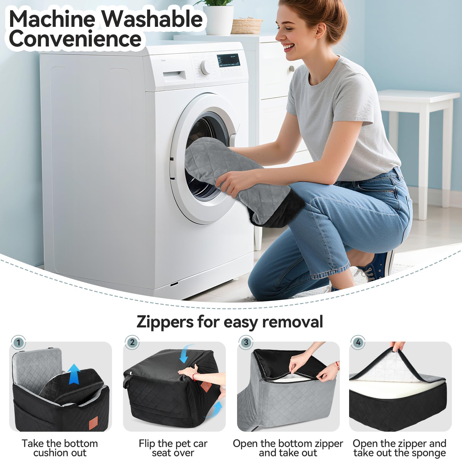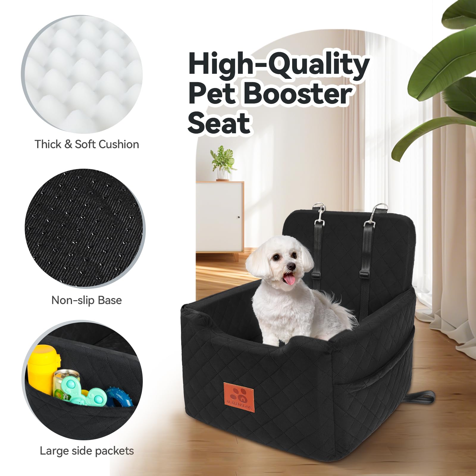 Dog Car Seat for Small/Medium Dogs Under 15 kg, Dog Car Seat, Removable and Washable Pet Car Seat, Dog Bed with 2 Seat Belts (Black/Grey)