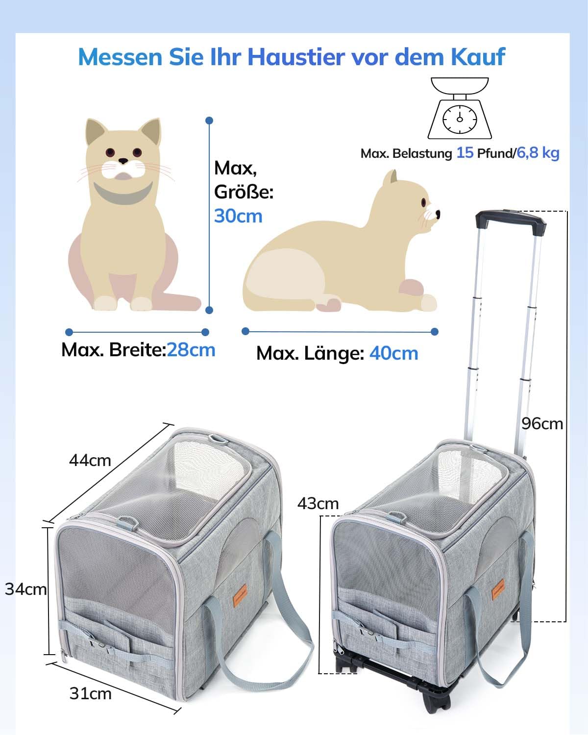 L 44 x B 31 x H 34 cm (mit Trolley)